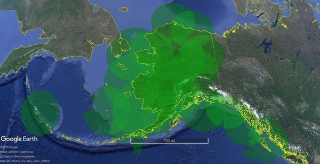 A static graphic portayal of Alaska with SSR Coverage at 5,000 feet above ground level.