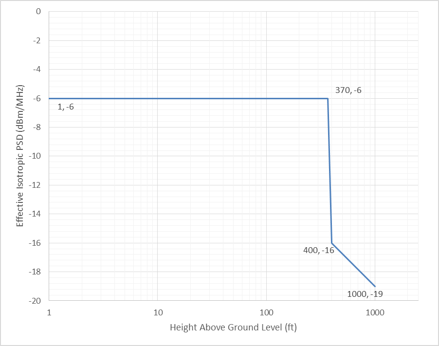 | Height above ground (ft) | Effective Isotropic PSD (dBm/MHz) |