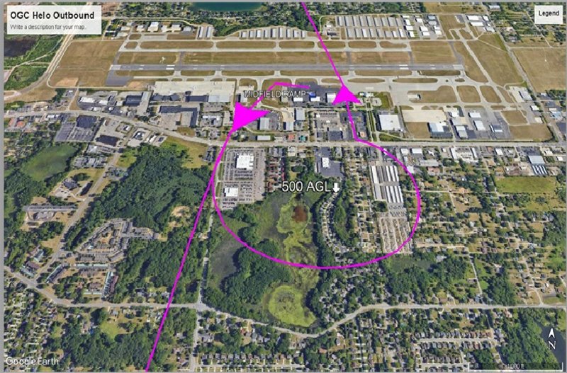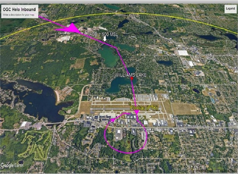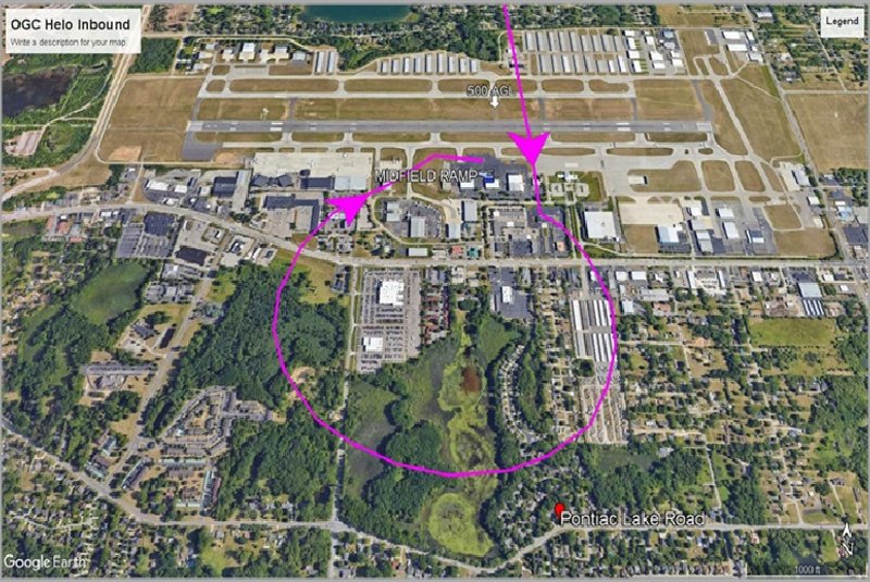 - From all points South: Proceed direct the Pontiac Lake Road point on the OGC HELICOPTER ARRIVAL.