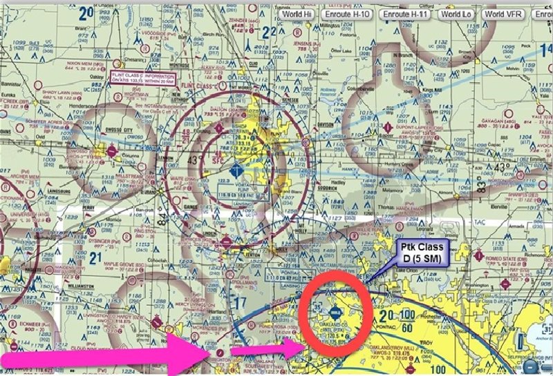 - From Lapeer Airport (D95) and all points north, proceed direct Oakland County Airport (PTK).