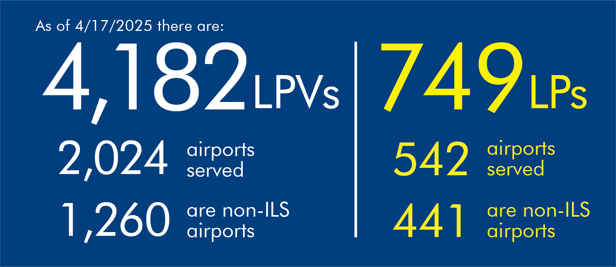 Aircraft equipped with WAAS LPV can access over 4,000 runway ends in poor weather conditions with minimums as low as 200 feet. WAAS can get you into places where an Instrument Landing System (ILS) may not be available.