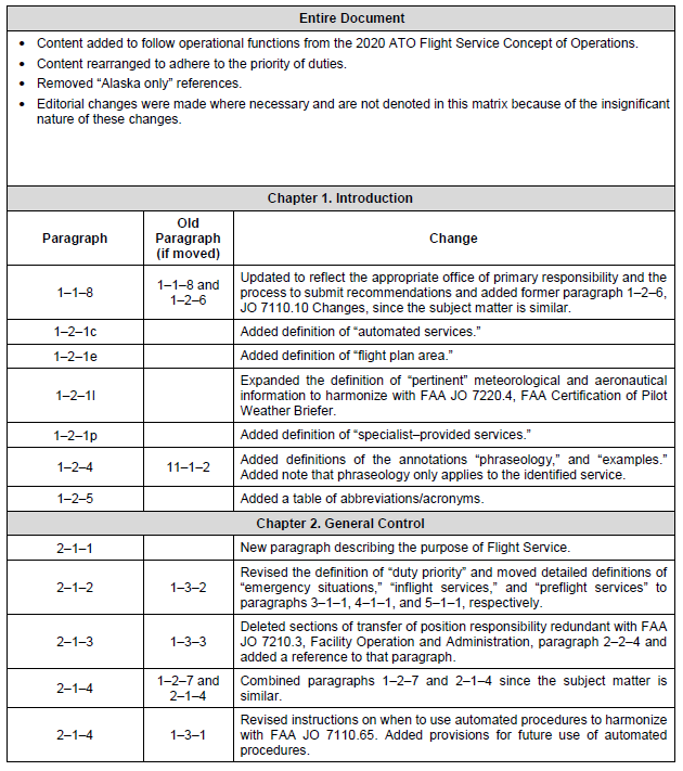 Editorial changes include a few simple corrections to verbiage in subparagraph 5-2-6e and Appendix A, a universal change replacing all prior references to the term Gulf of Mexico with the term Gulf of America in accordance with Executive Order 14172, and a universal change updating the term Notice to Air Missions (NOTAM) to Notice to Airmen (NOTAM).