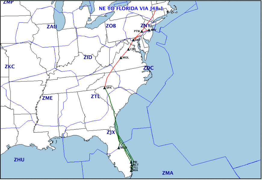 Flights to/from the EAST coast of Florida using J48 (includes MCO and satellites), may be similar to the current NE TO FLORIDA VIA J48 1 playbook