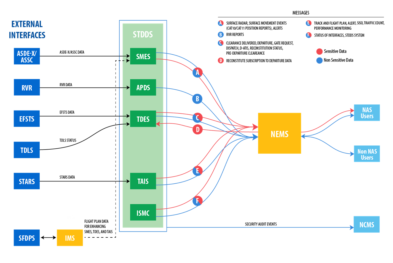 SWIM Terminal Data Distribution System (STDDS) converts legacy terminal data collected from airport towers and Terminal Radar Approach Control (TRACON) facilities into easily accessible information, which is published via the National Airspace System (NAS) Enterprise Messaging Service (NEMS).
