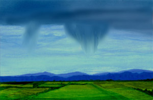 A high speed video of an actual microburst, the result of the processes described in the previous video, is available below. This copyrighted video was provided by Mr. Bryan Snider, a Phoenix, Arizona professional photographer, and is used here with his permission.